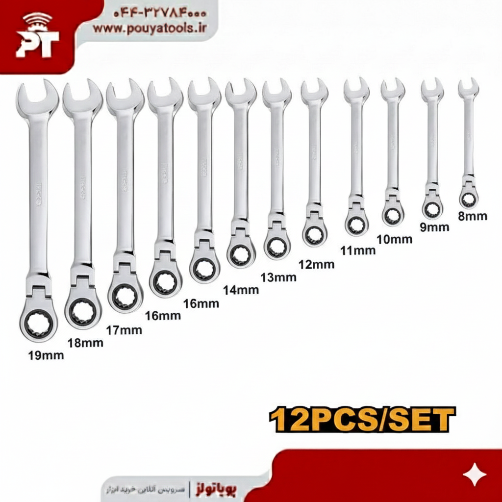 مشخصات فنی ست آچار جغجغه تاشو 12 عددی اینکو